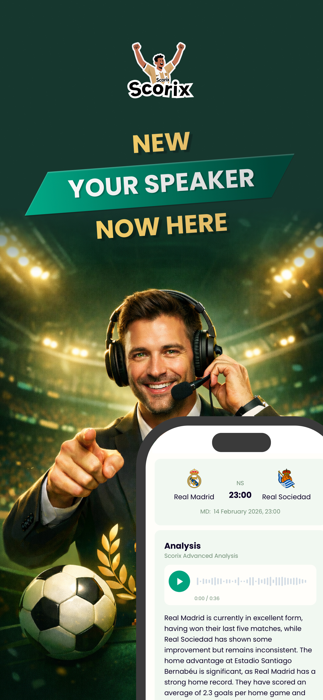 Scorix helps you follow fixtures with AI-assisted predictions, minute-by-minute updates, advanced team and league statistics, head-to-head context, and optional AI commentary audio—so every match makes more sense, faster.